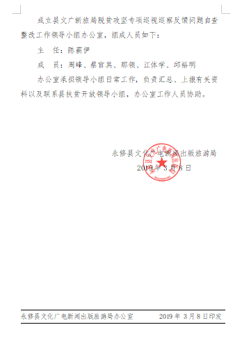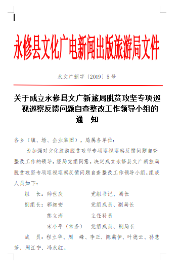 关于成立永修县文广新旅局脱贫攻坚专项巡视巡察反馈问题整改工作领导小组的通知
