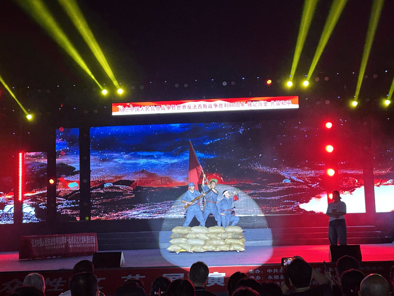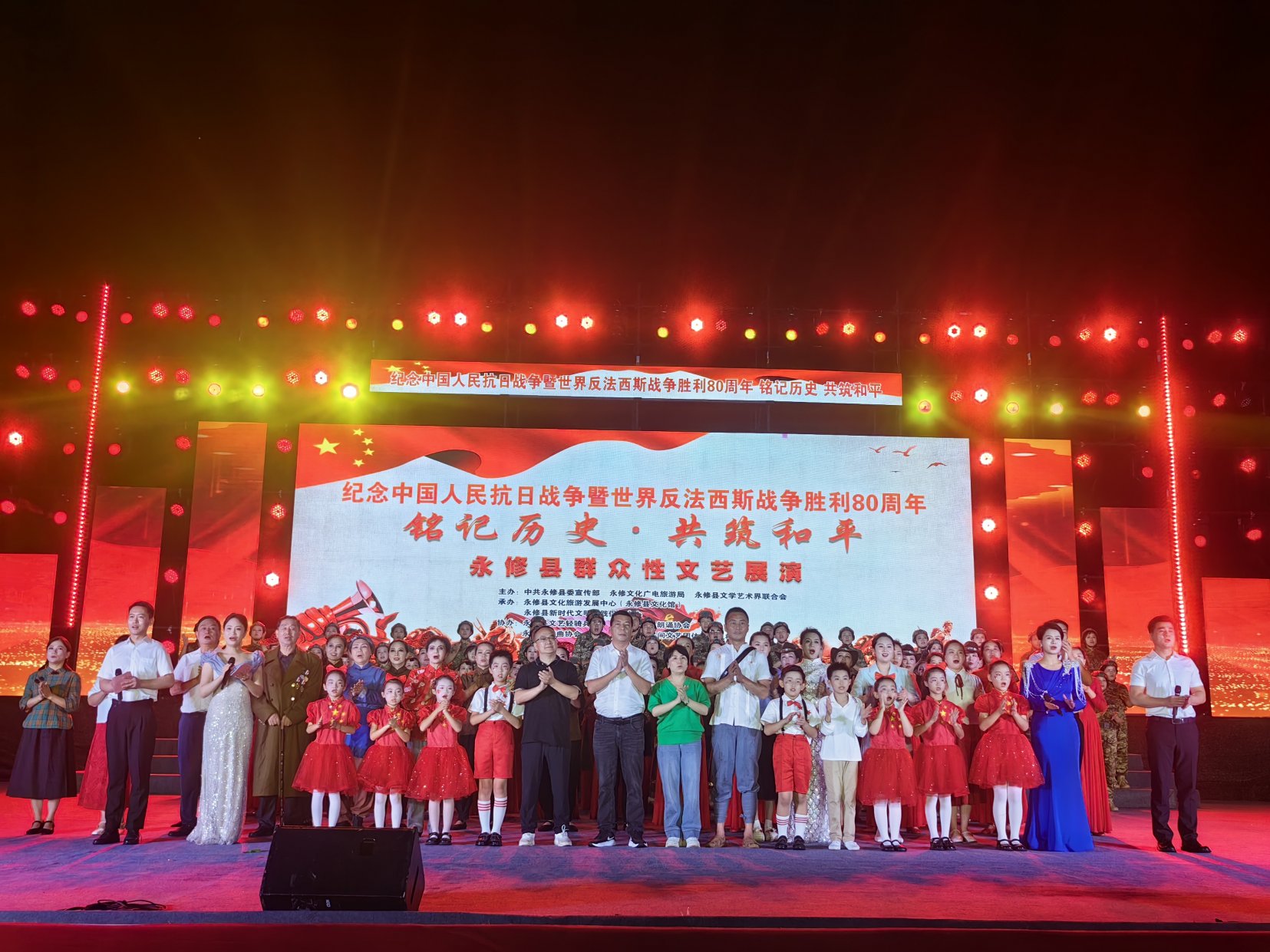 为纪念中国人民抗日战争暨世界反法西斯战争胜利80周年,9月1日晚,由永修县委宣传部、县文广旅局、县文学艺术界联合会联合主办的“铭记历史·共筑和平”永修县群众性文艺展演在县市民广场举行。
