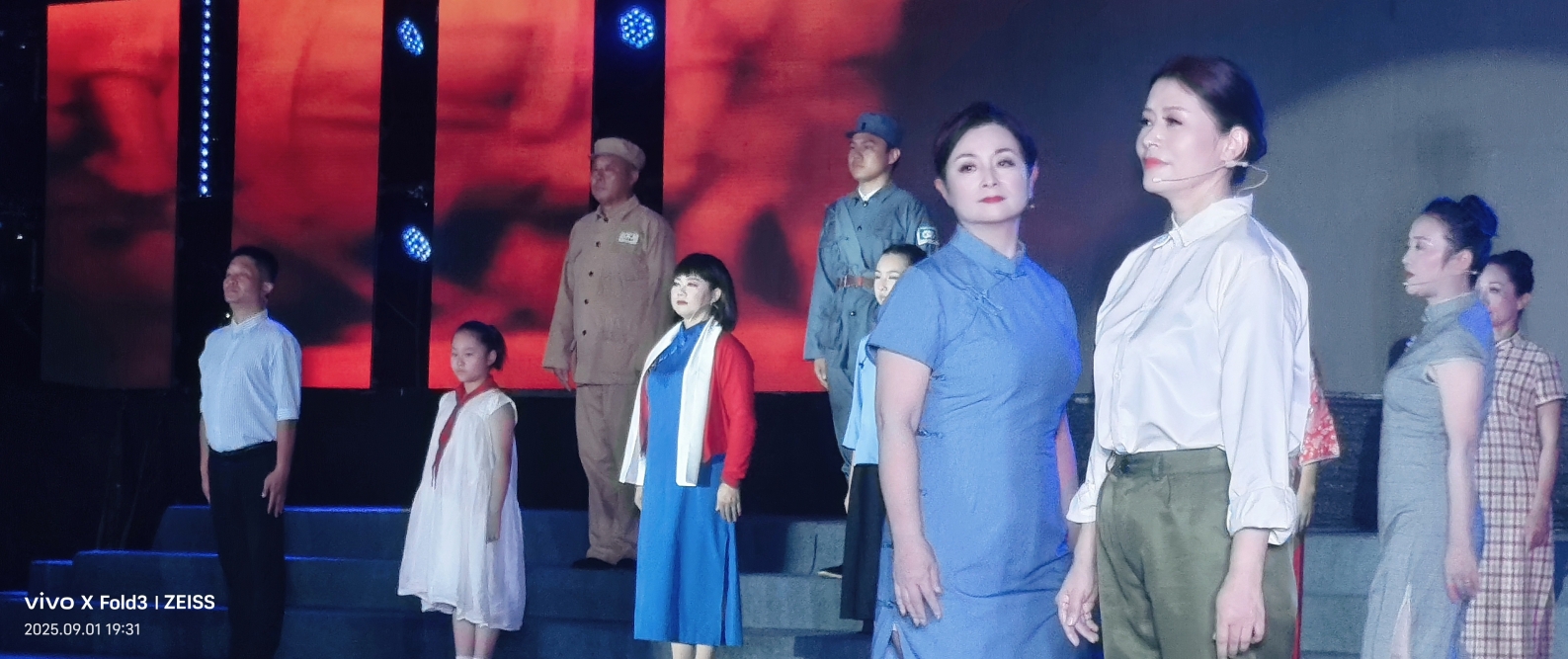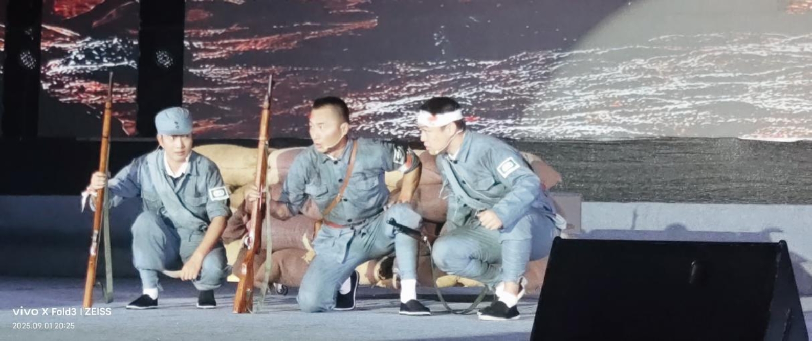 舞台剧《你记得我我就活着》将整场展演推向高潮,剧中革命战士从战火纷飞的抗战年代“穿越”至今,亲眼看到了他们用生命换来的和平盛世,这场跨越时空的对话,瞬间点燃了全场观众的爱国热情,成为当晚最难忘的记忆。
