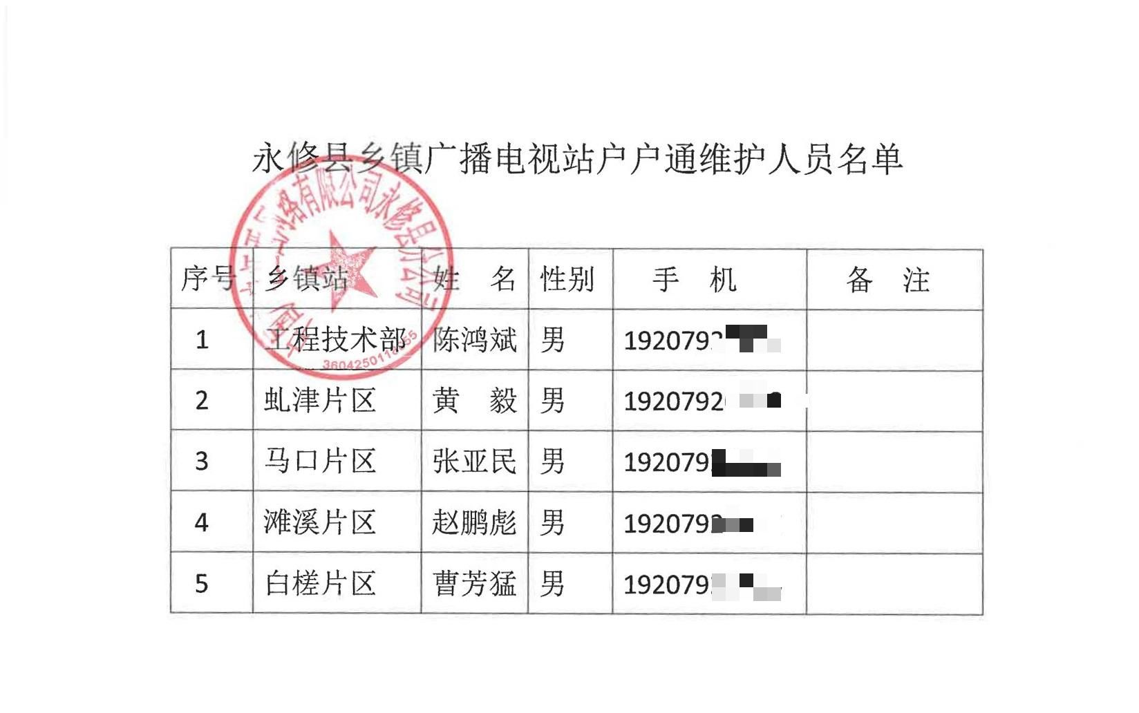永修县2023年乡镇广播电视站户户通维护人员名单公示