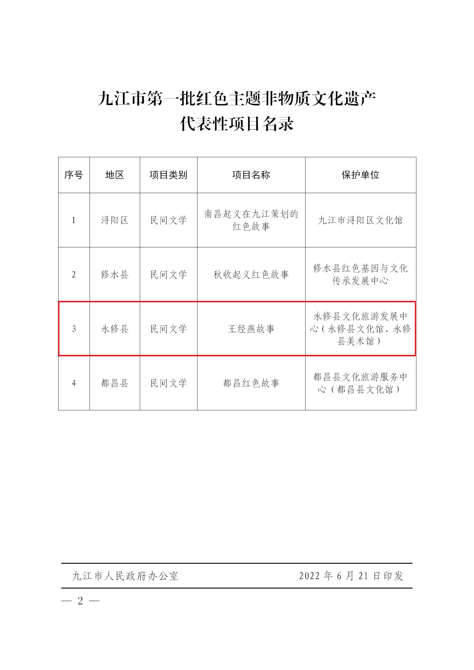 喜报:我县《王经燕故事》入选九江市第一批红色主题非物质文化遗产代表性项目名录