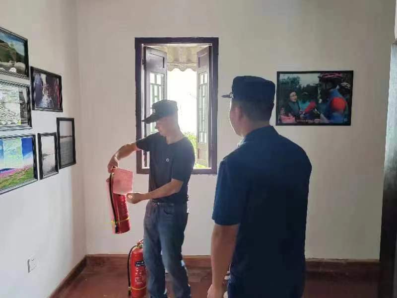 文物局工作人员每到一处,积极向当地居民宣传文物消防安全的重要性,现场指导安全管理员正确使用消防器材及使用说明,张贴严禁烟火、严禁携带易燃易爆危险品等安全提示语,采用图文相结合的方式进一步提高了消防安全宣传力度。