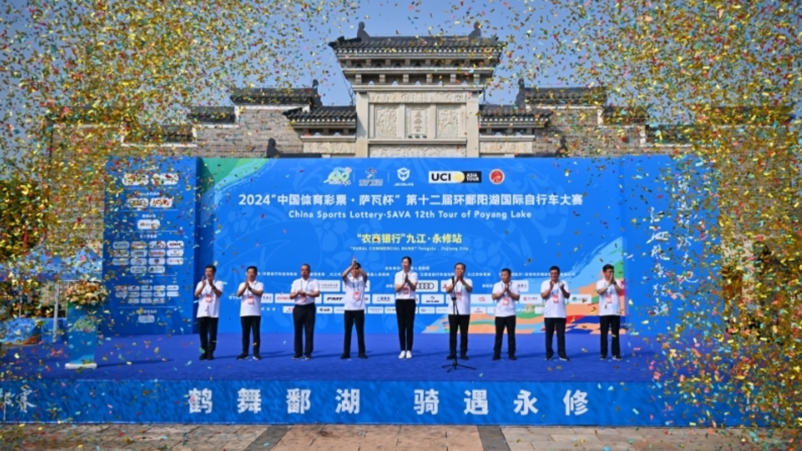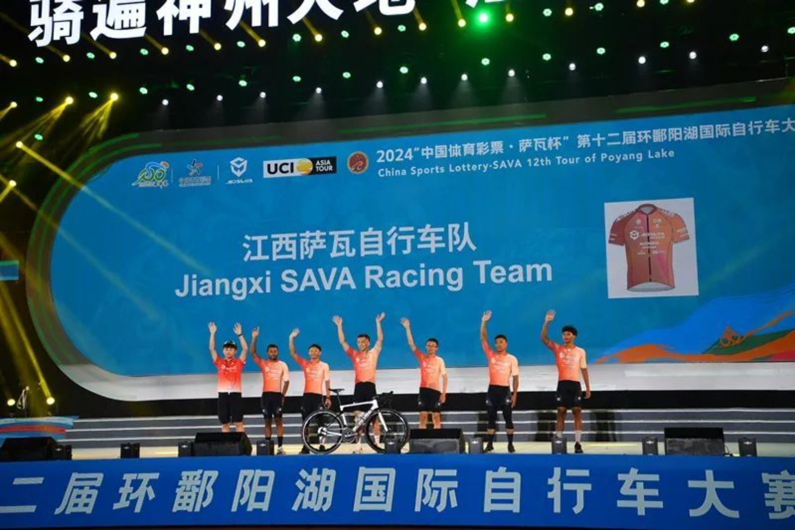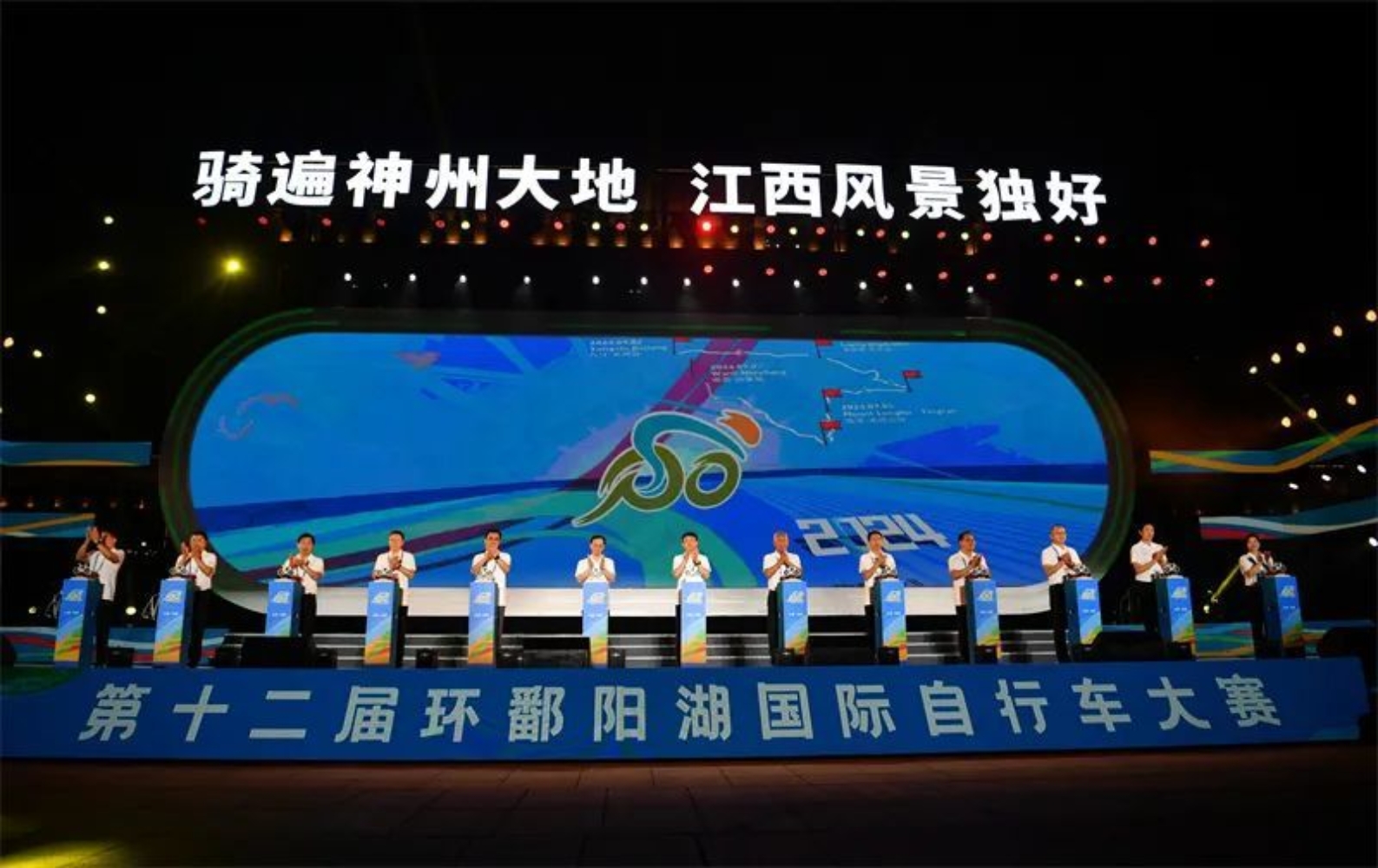 2024年9月1日晚上,由国际自行车联盟授权,江西省人民政府主办,中国自行车运动协会、江西省体育局、全省十一个设区市人民政府及各分站举办地县级人民政府承办,深圳市天珺体育咨询有限公司策划执行的2024“中国体育彩票·萨瓦杯”第十二届环鄱阳湖国际自行车大赛开幕式在江西省九江市永修县举行。