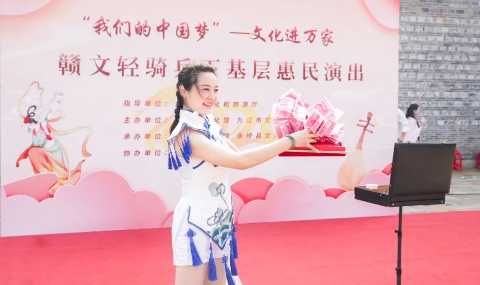 4月29日,由江西省文化和旅游厅指导,江西省文化馆、九江市文化广电旅游局主办,九江市文化馆、永修县文化广电旅游局承办,永修县文化馆协办的2025年“我们的中国梦”——文化进万家 赣文轻骑兵下基层惠民演出活动在永修吴城举行。活动以小而精、接地气、暖民心的形式,为当地群众献上了一场丰富多彩的文化盛宴,让艺术芳华绽放在基层沃土。