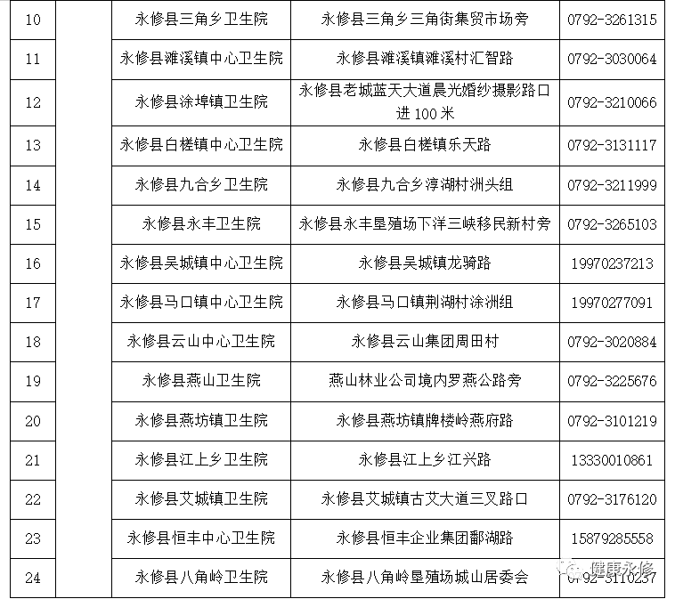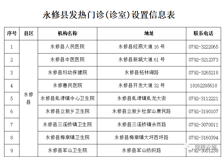 永修县公布发热门诊(诊室)名单