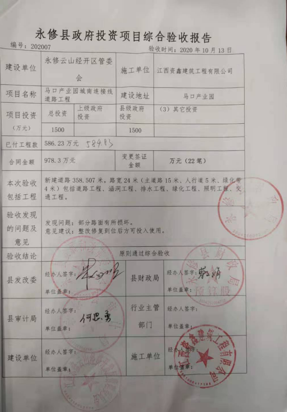 马口产业园城南连接线道路工程综合验收报告