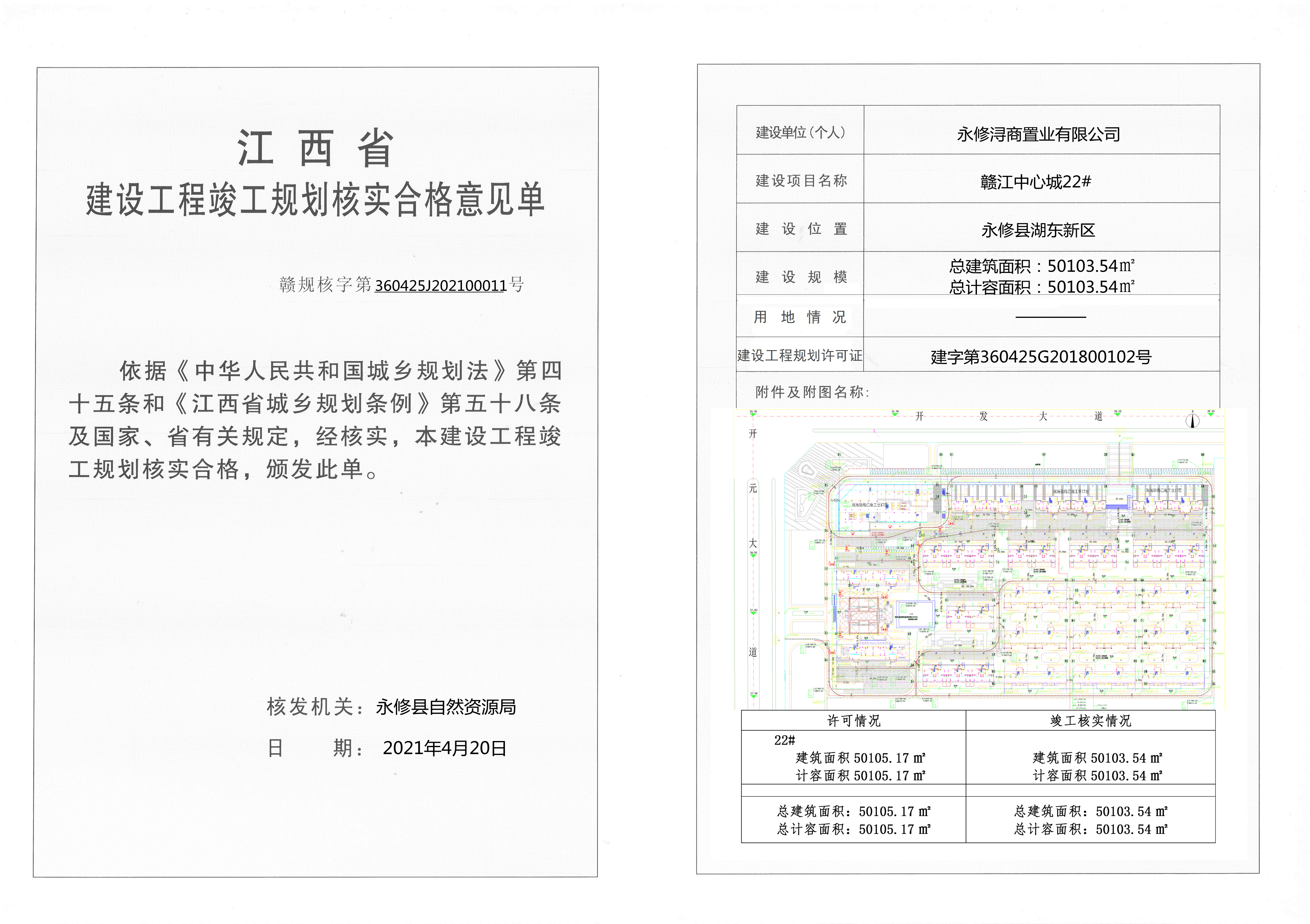 永修浔商置业有限公司竣工规划验收合格单