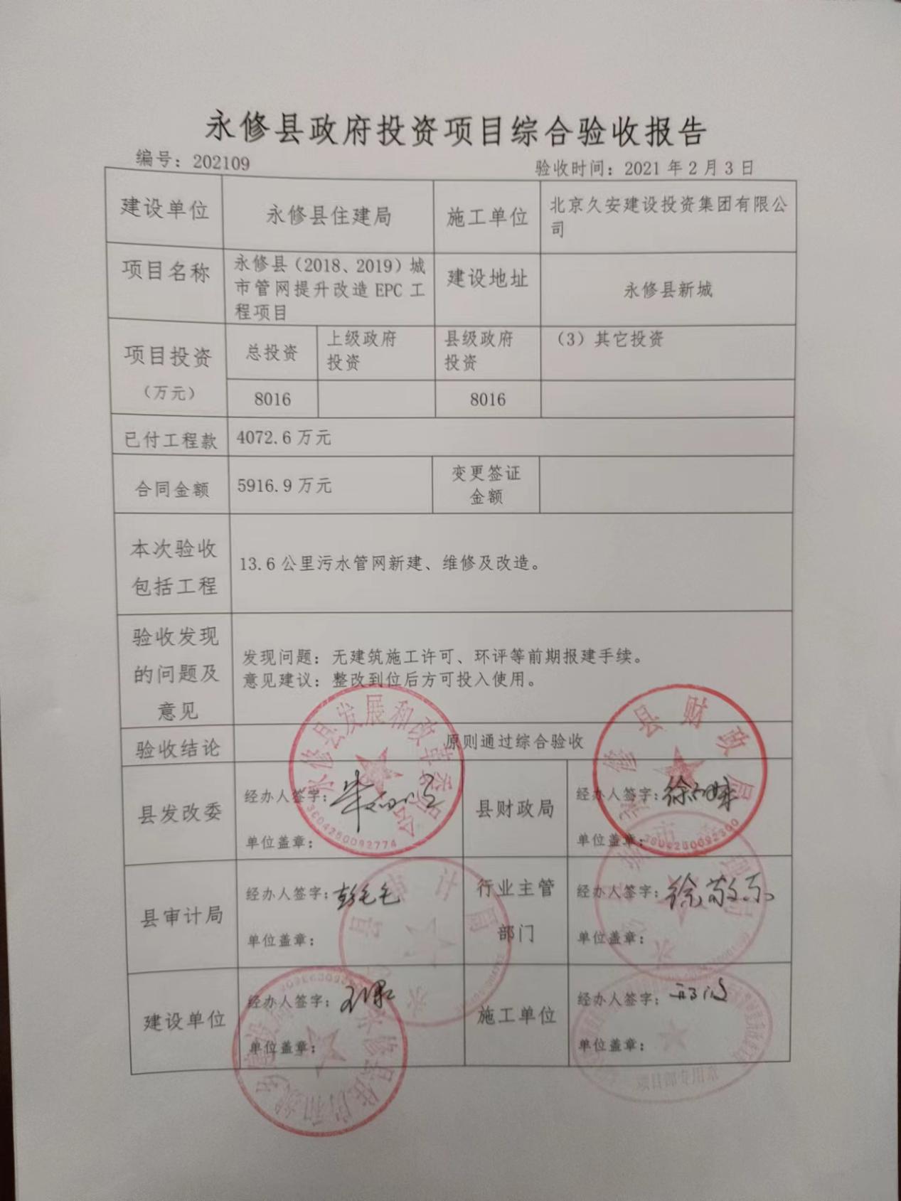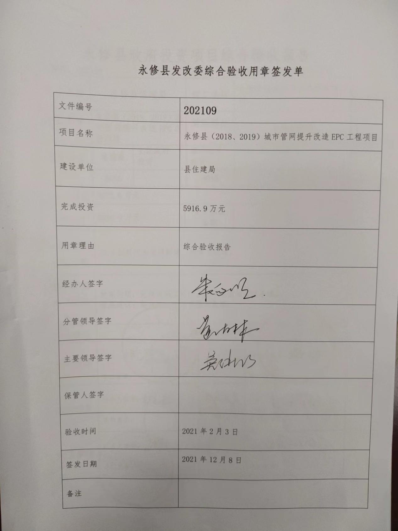 永修县(2018、2019)城市管网提升改造EPC工程项目综合验收报告