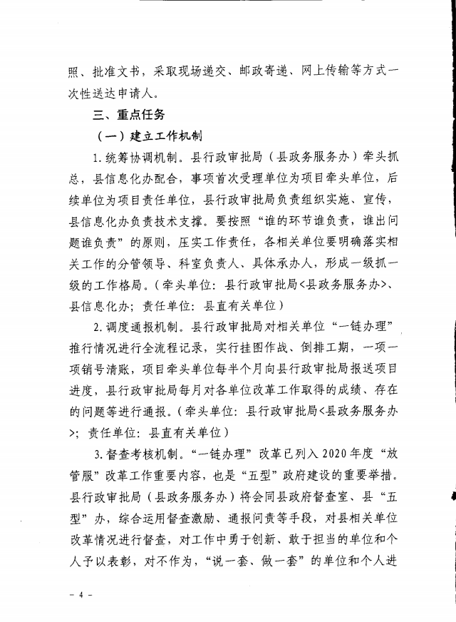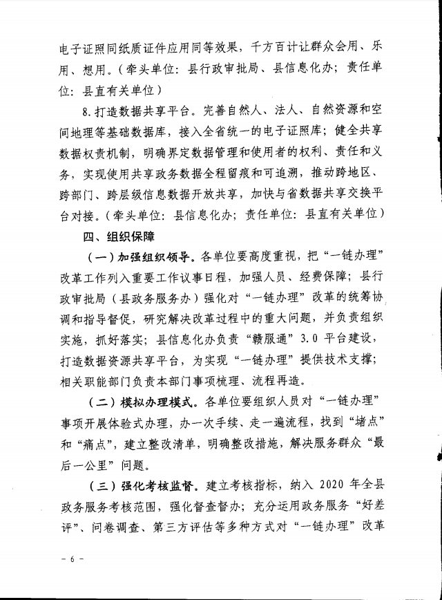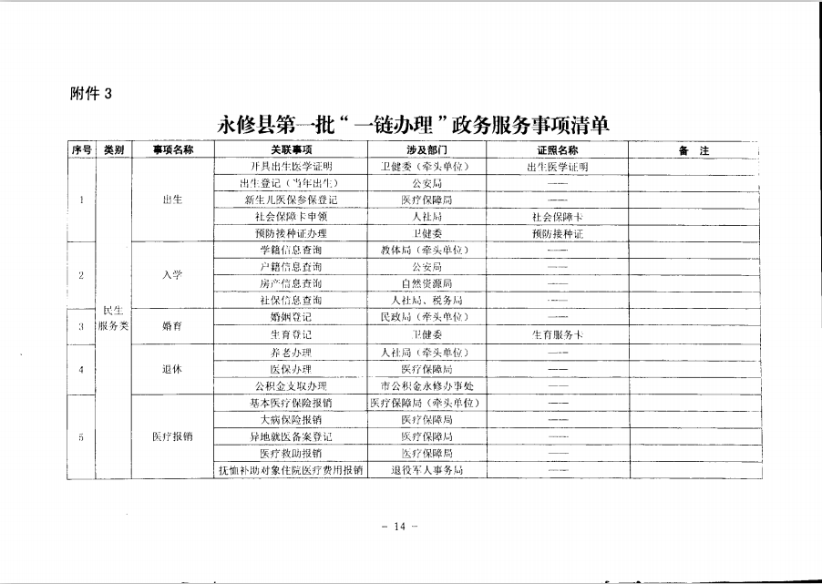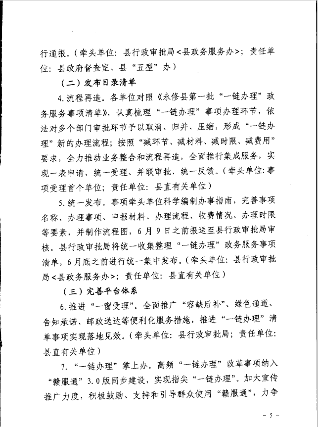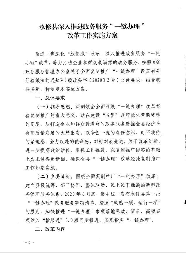 永修县人民政府办公室关于印发永修县深入 推进政务服务“一链办理”改革 工作实施方案的通知