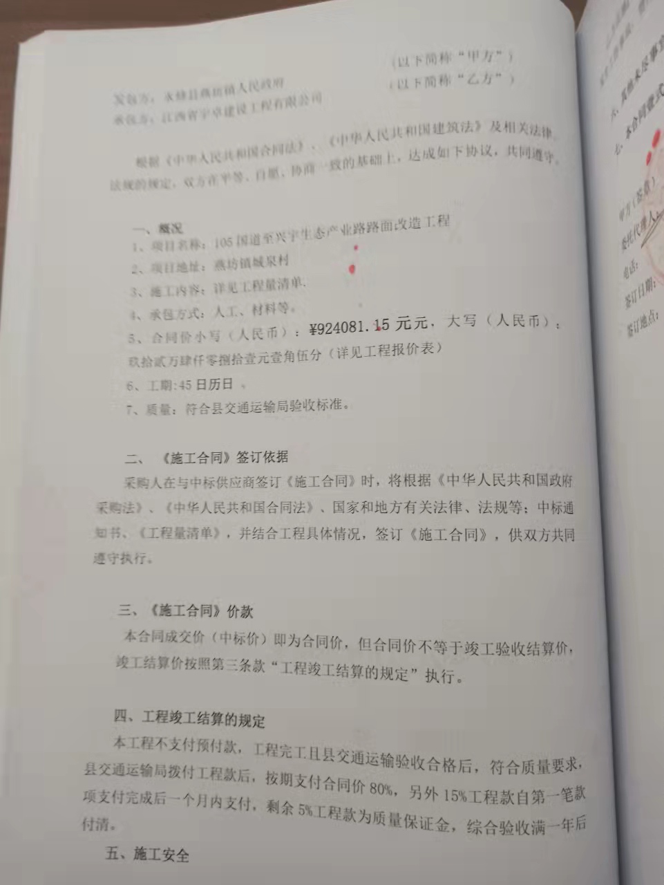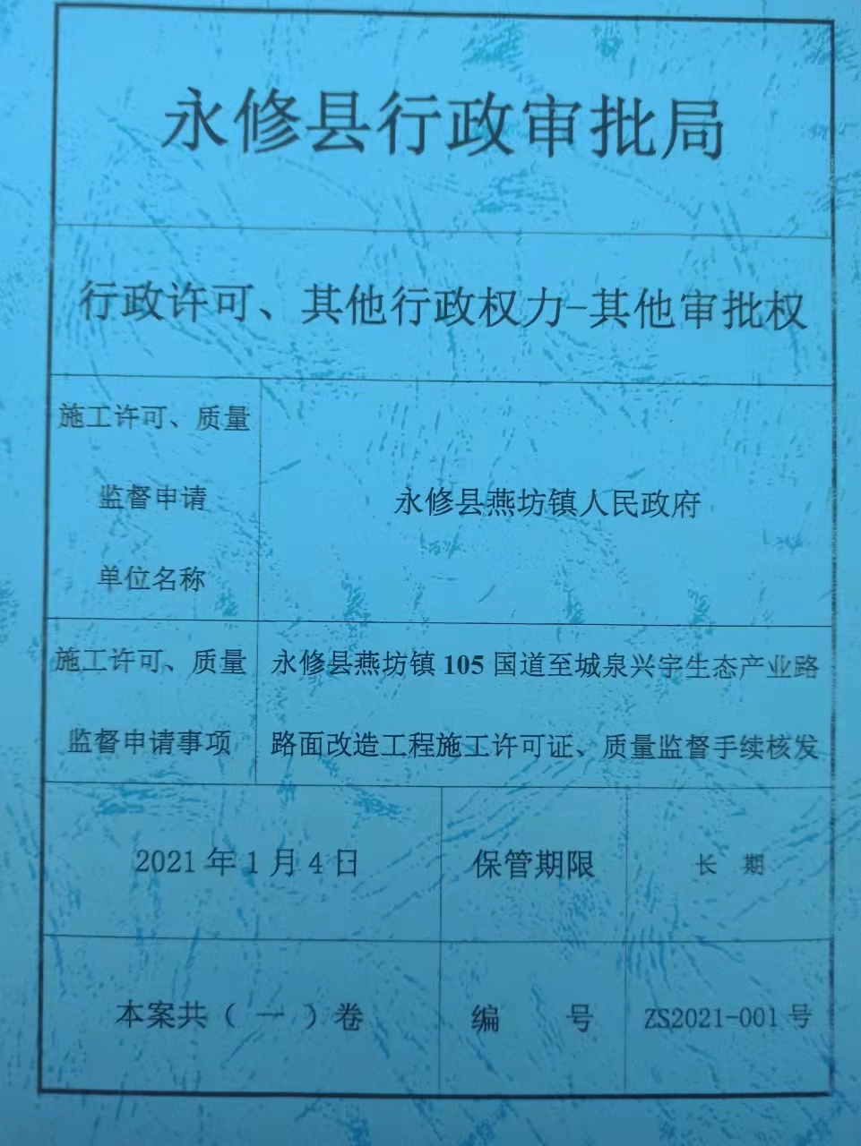 永修县燕坊镇105国道至城泉兴宇生态产业路路面改造工程施工有关信息