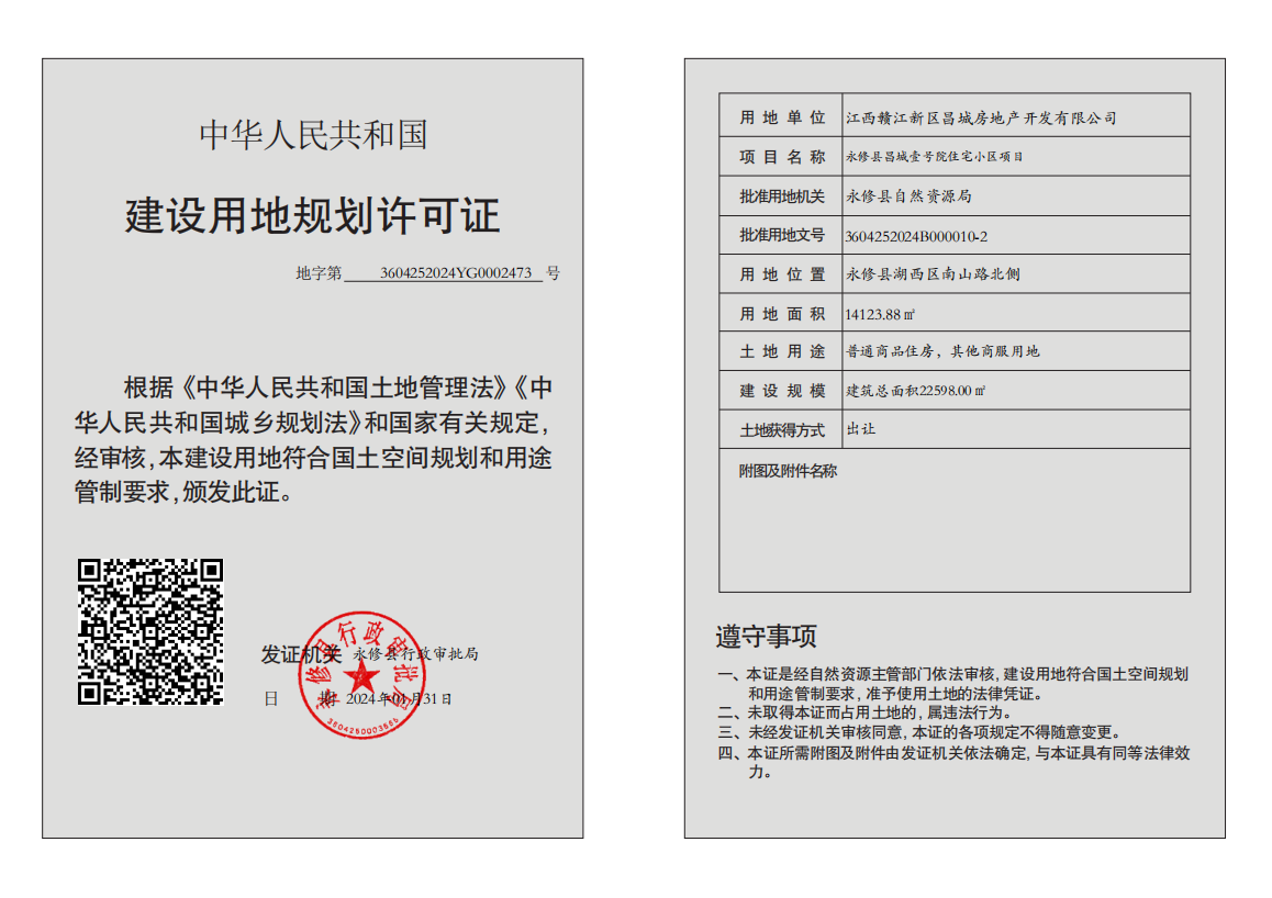 永修县昌城壹号院住宅小区项目建设用地规划许可证