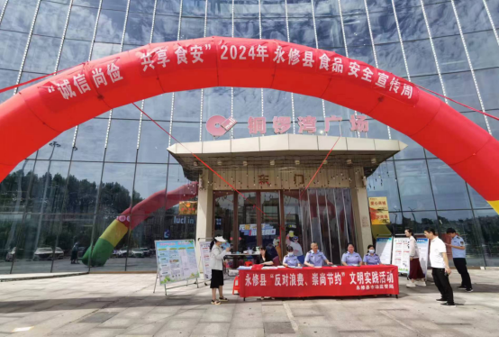 为牢固树立“诚信”的食安理念,大力倡导“尚俭”的社会风尚,努力打造食品安全社会共治新格局,近日,永修县食安办牵头,联合县市场监管局、县农业农村局、县商务局、县检验检测中心等食安委成员单位在永修县铜锣湾购物广场开展以“诚信尚俭 同享食安”为主题的2024年食品安全宣传周活动。