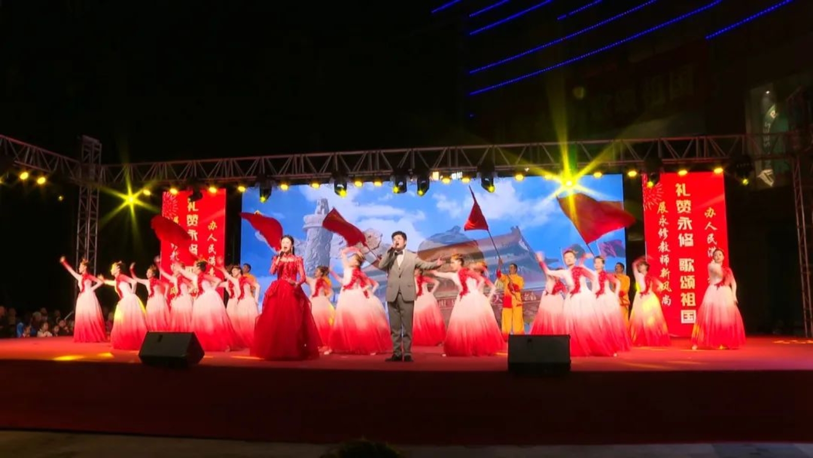 10月1日晚,教师风采文艺展演活动由县教体局承办,县文化馆协办。全县多家学校精心编排了一系列精心编排的节目轮番上演,令人目不暇接。