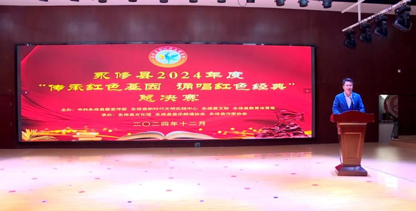12月28日,由永修县委宣传部、县新时代文明实践中心、县文联、县教体局共同主办的2024年永修县“传承红色基因,诵唱红色经典”总决赛在县文化馆举行。