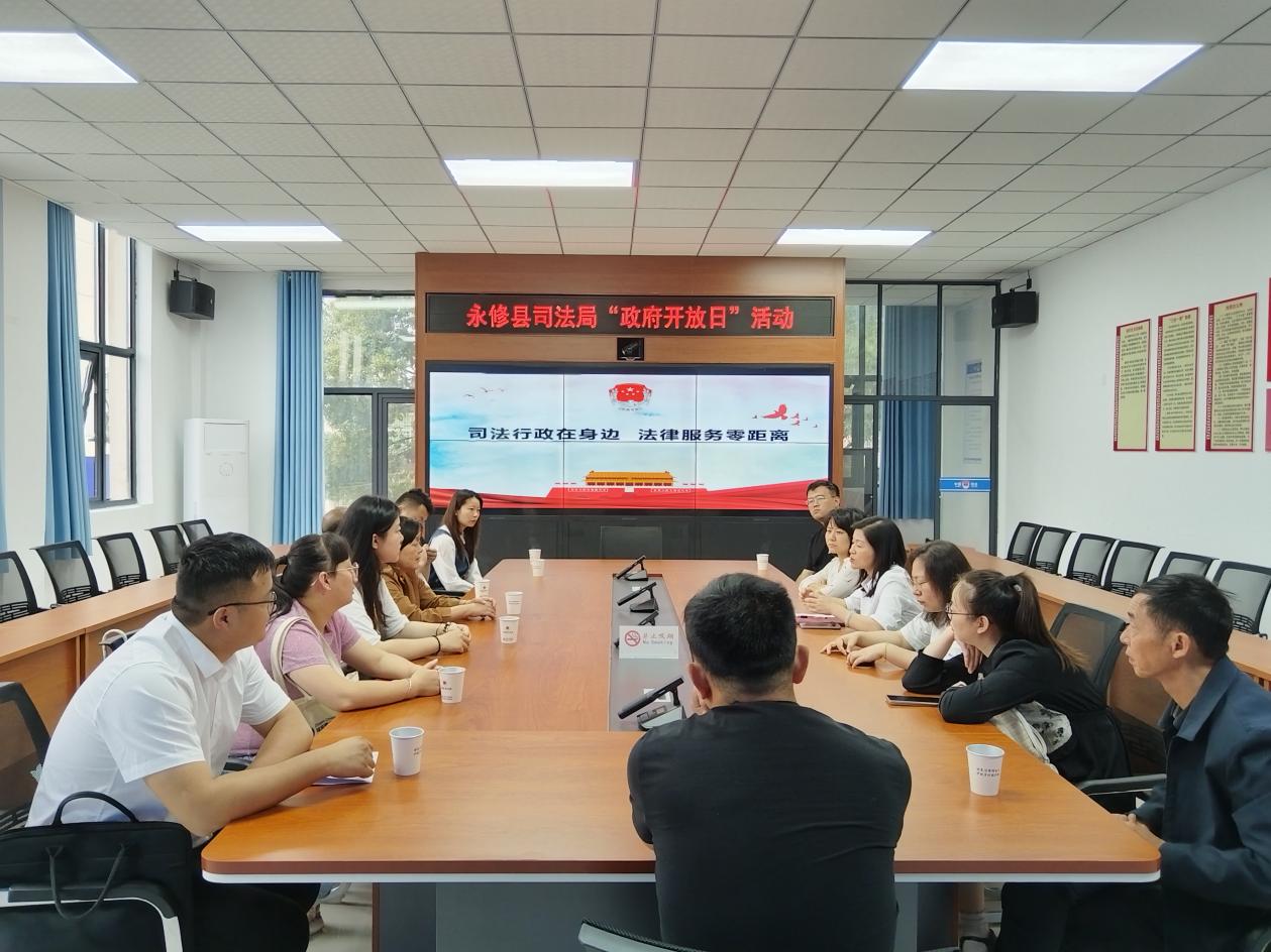 为进一步提升司法行政工作的社会认知度和群众满意度,增强司法行政机关与群众之间的沟通和联系。6月5日,永修县司法局组织开展以“司法行政在身边,法律服务零距离”为主题的“政府开放日”活动,主动邀请县人大代表、政协委员及市民代表一起近距离了解我县司法行政工作的开展情况,直观感受司法行政工作的相关流程。