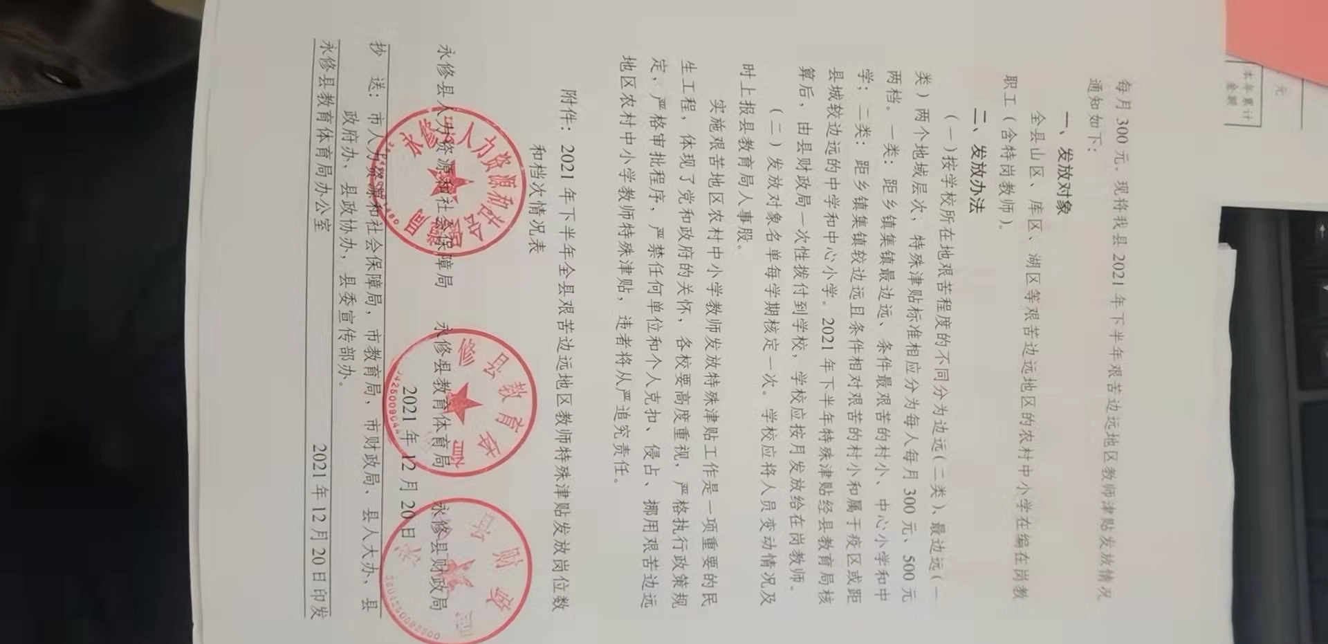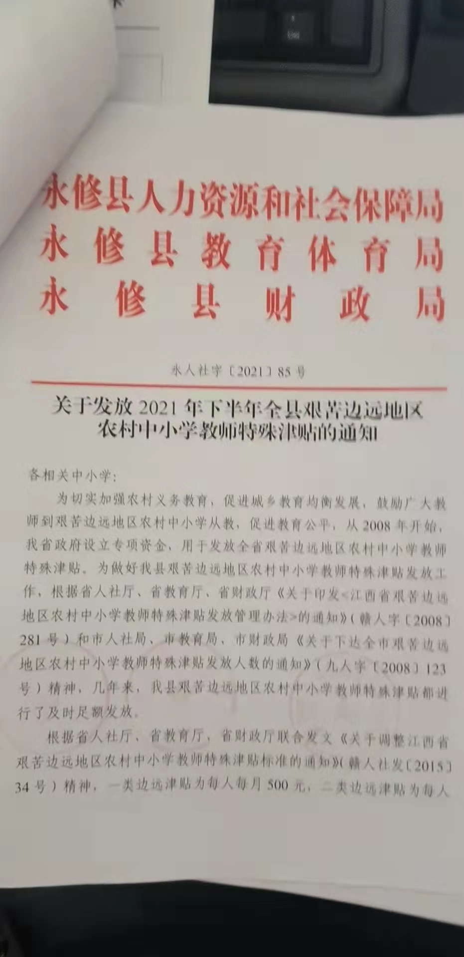 关于发放2021年下半年全县艰苦边远地区农村中小学教师特殊津贴的通知