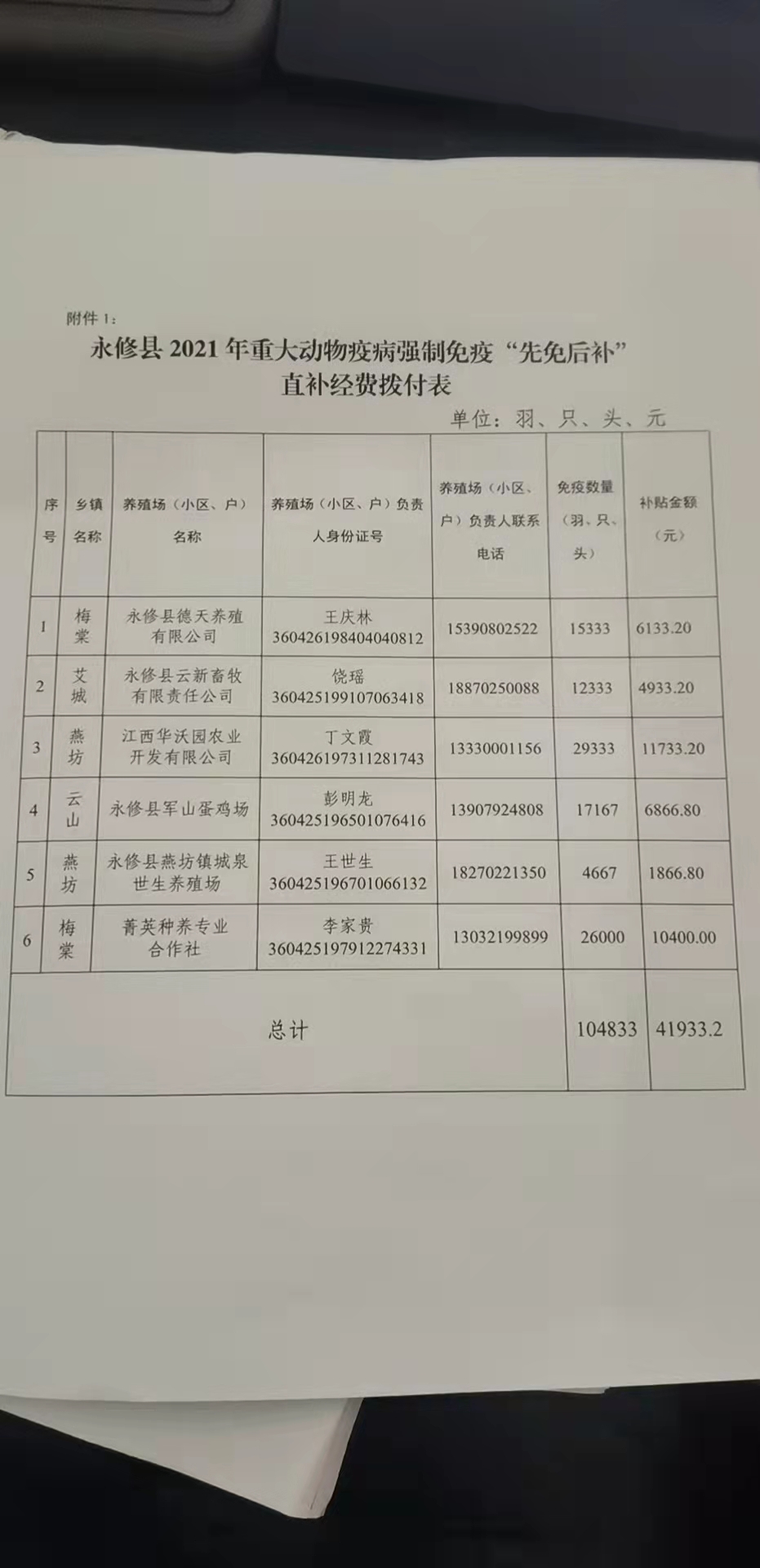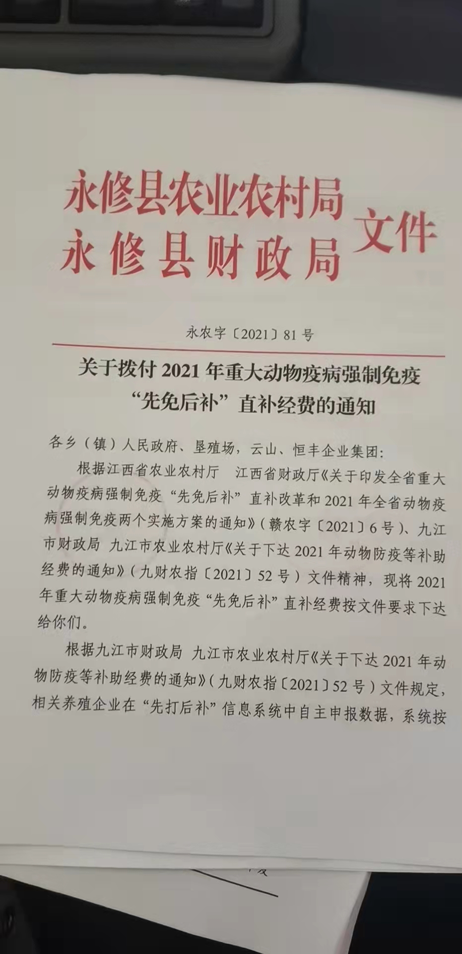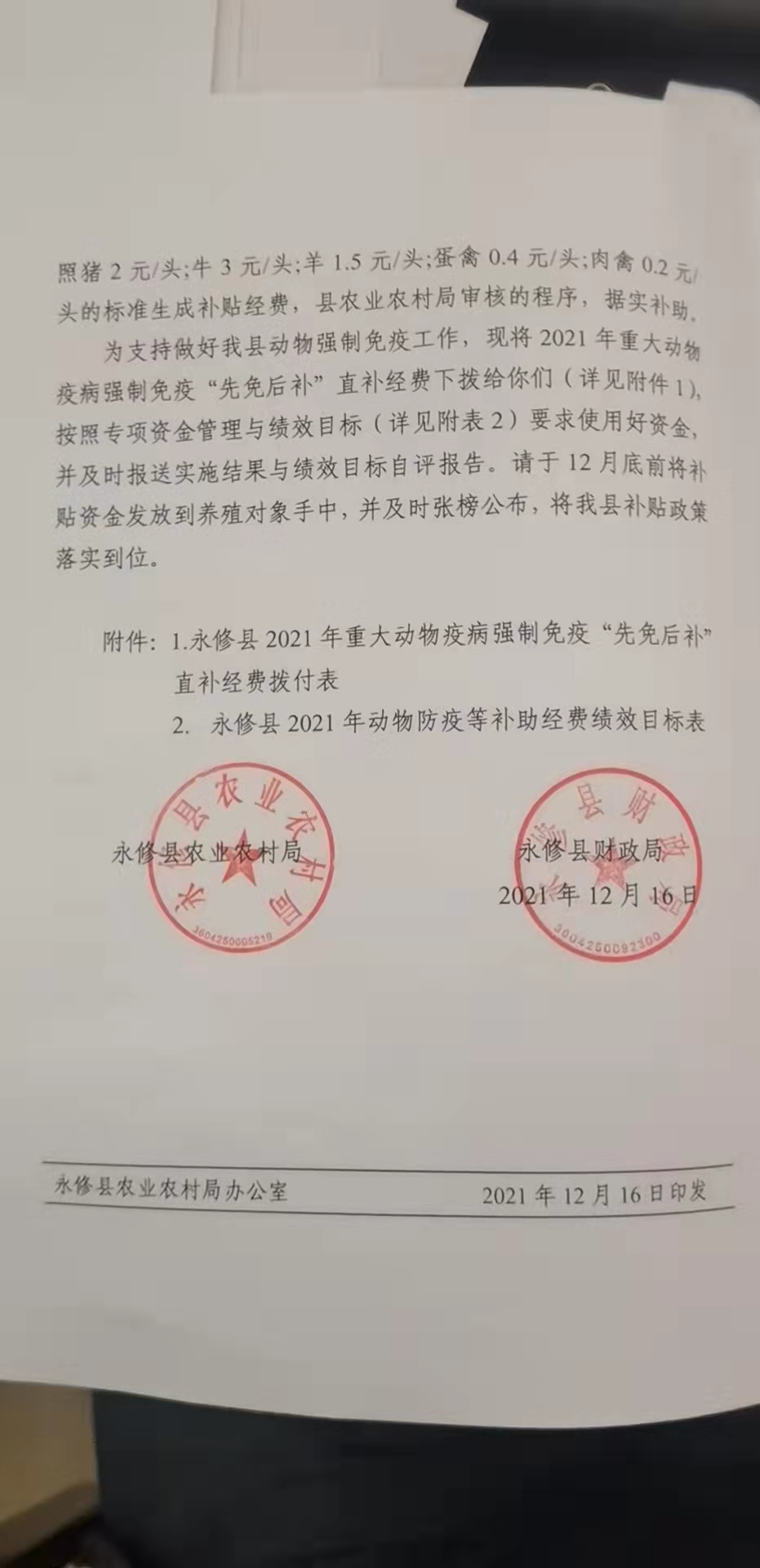 关于拨付2021年重大动物疫病强制免疫“先免后补”直补经费的通知