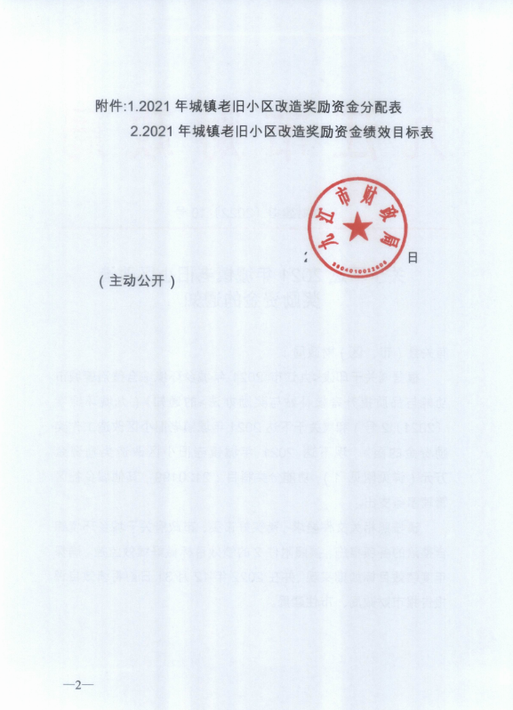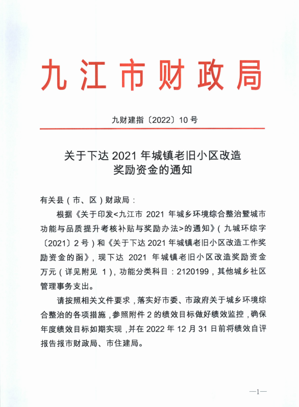 关于下达2021年城镇老旧小区改造奖励资金的通知