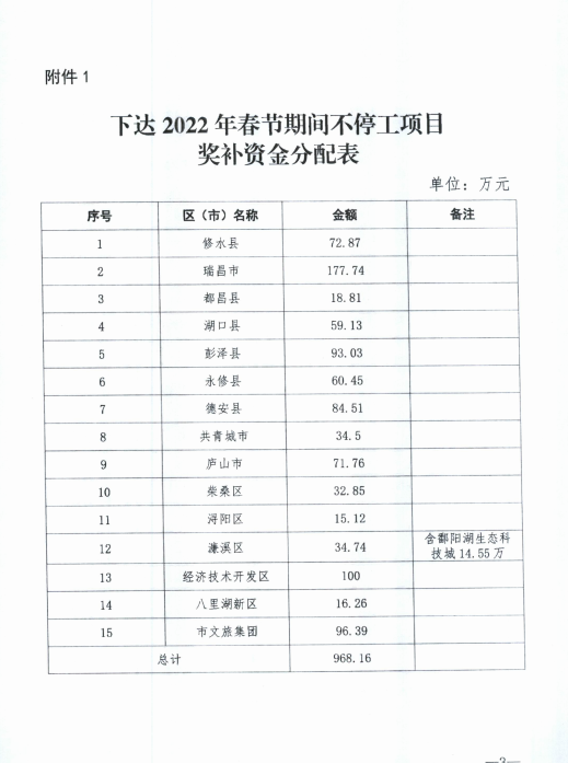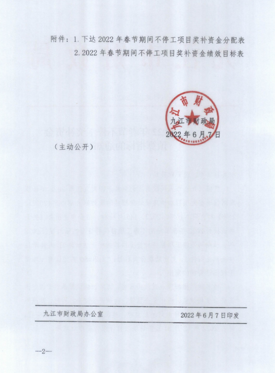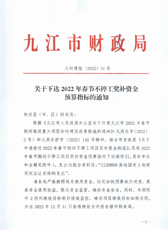 关于下达2022年春节不停工奖补资金预算指标的通知