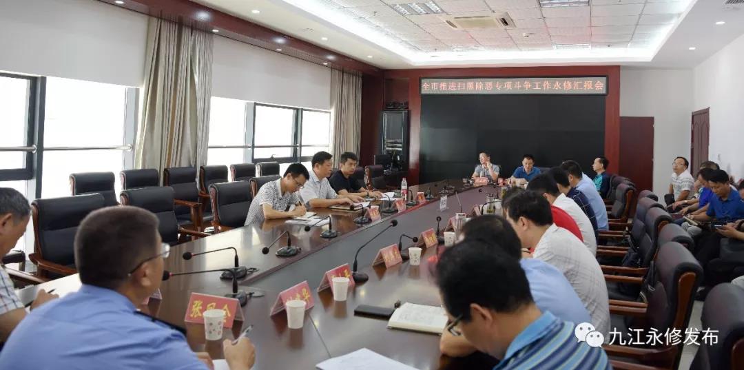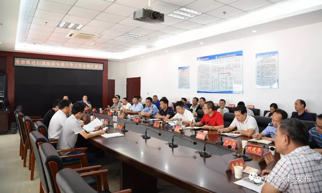 9月10日,市扫黑办常务副主任、市公安局副局长一行来永修县督导推进扫黑除恶专项斗争工作,县政府副县长、公安局长彭坚,县法院院长熊杰,县公安局政委龚浙江出席会议,五个专项组组长、成员单位主要负责人、县扫黑办全体人员参加汇报会。