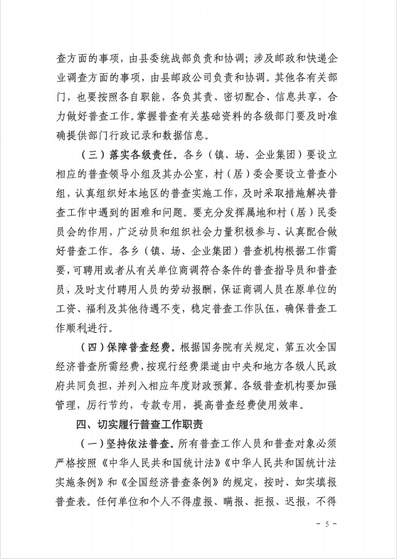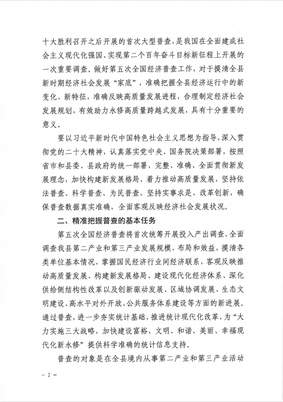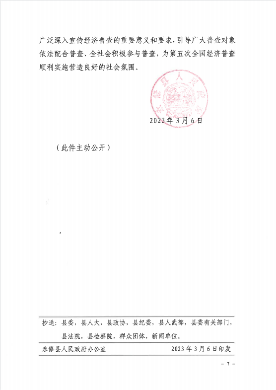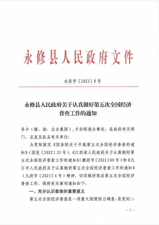 永修县人民政府关于认真做好第五次全国经济普查工作的通知