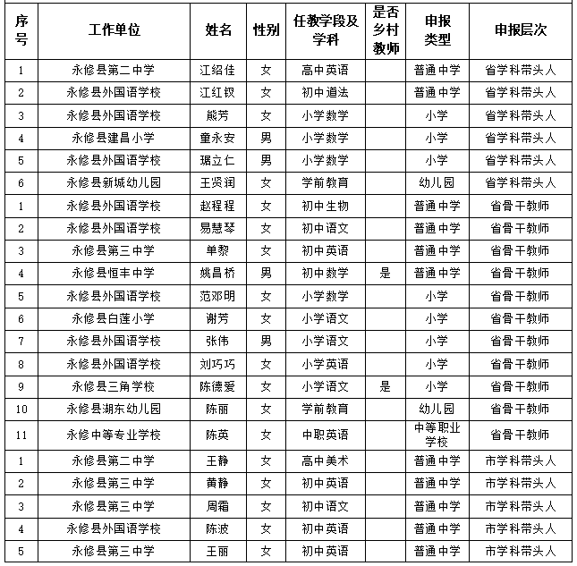 永修县2025年推荐、选拔省、市学科带头人和骨干教师人选的公示