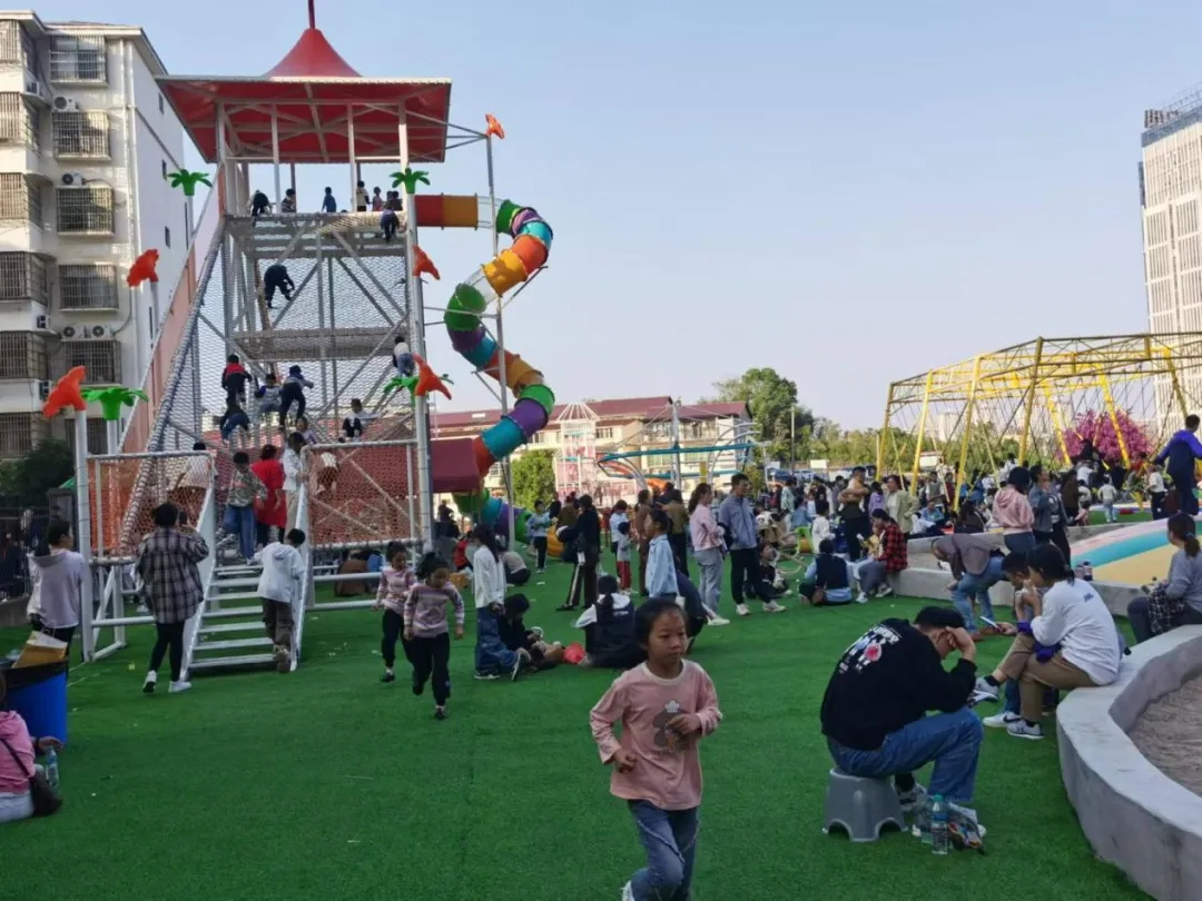 据了解,该游乐园占地20亩,具有“勇攀高峰”“飞天城堡”“火山攀岩”“滑世界”“丛林穿越”等20多项游乐设施,是县城范围内最大的露天无动力亲子游乐园,在节假日等游玩高峰期,平均每天接待游客1000余人次,成为辖区居民儿童亲子互动、休闲娱乐的好去处。