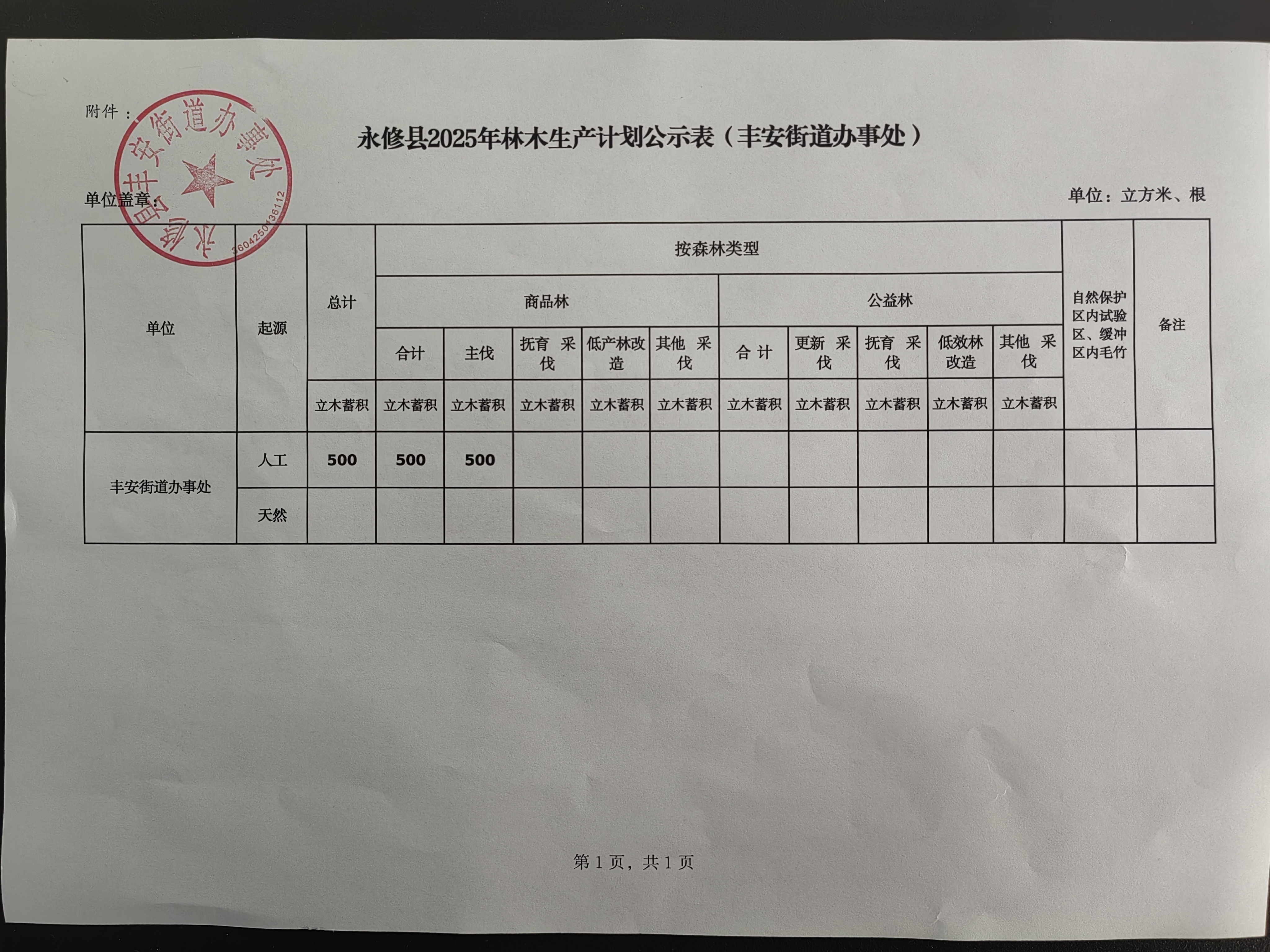 丰安街道2025年林木生产计划公示表