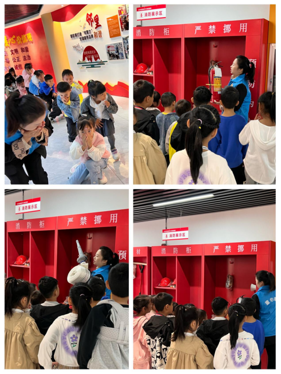 在消防展示区,社区志愿者向小朋友们讲解了烟感报警器、手动报警器的用途及发送警报的声音特点,组织小朋友们开展逃生疏散演练,小朋友们纷纷用湿毛巾捂住口鼻,弯着腰,安全、有序、快速地疏散到安全场所。
