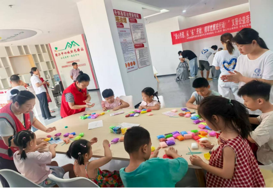 活动现场暖意融融,身着红色马甲的志愿者们早早来到场地,细心布置好理发区域,备齐了全套理发工具,用饱满的热情迎接每一位前来的居民。他们耐心引导老人和孩子有序就座,遇到行动不便的老人,更是迅速上前,小心翼翼地搀扶着,从协助就座到全程陪伴理发,每一个动作都饱含着贴心与敬意。一旁等待的孩子们也不闲着,在志愿者老师的亲切引导下,大家盯着展示的图片,发动聪明的小脑瓜,用小手揉、捏、搓、压,在专注的创作中,简单的动作幻化出无限可能,一张张充满童趣的作品渐渐成型。