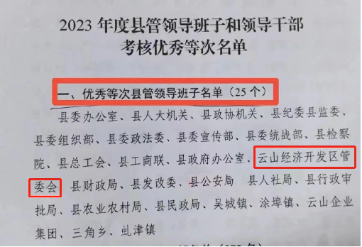 喜报!云山经开区荣获2023年度县直(驻县)单位综合考核第一等次等多项殊荣