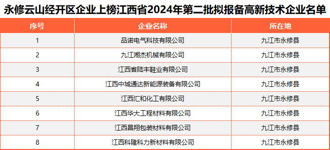 云山经开区多家企业荣登江西省2024年第二批高新技术企业备案名单