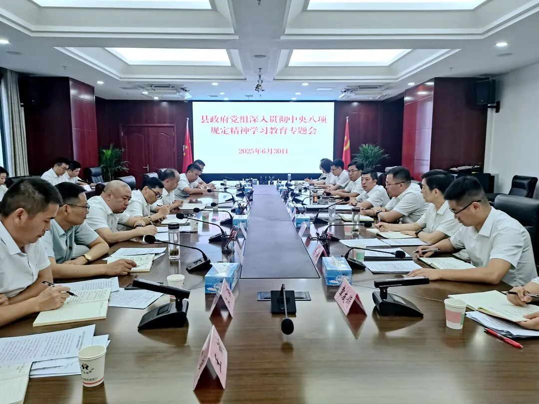 6月30日,县委副书记、县长朱超来到县政府办机关党支部讲深入贯彻中央八项规定精神学习教育专题党课。县政府班子成员及县政府办机关全体党员干部参加。