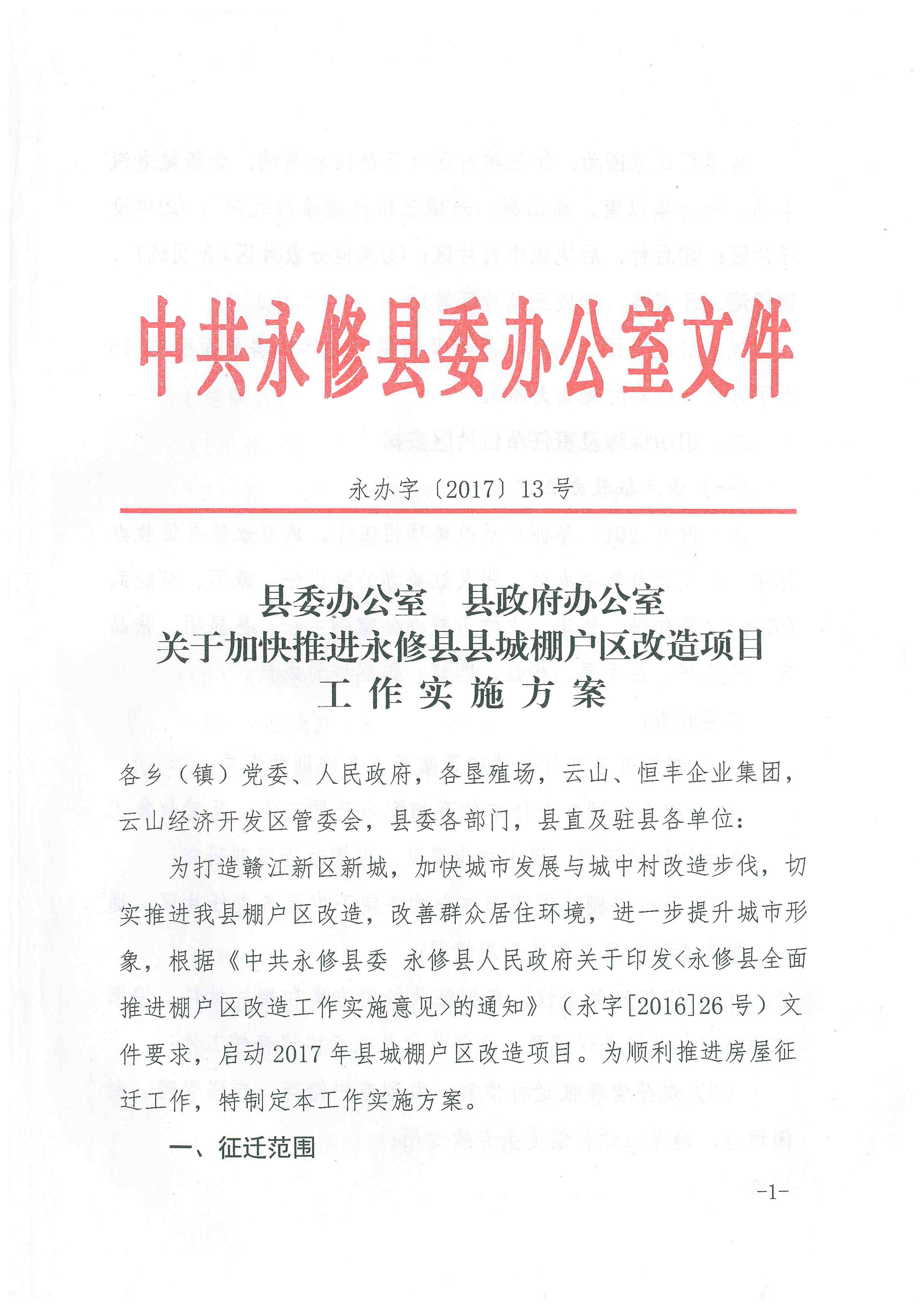 县委办公室 县政府办公室关于加快推进永修县县城棚户区改造项目实施方案
