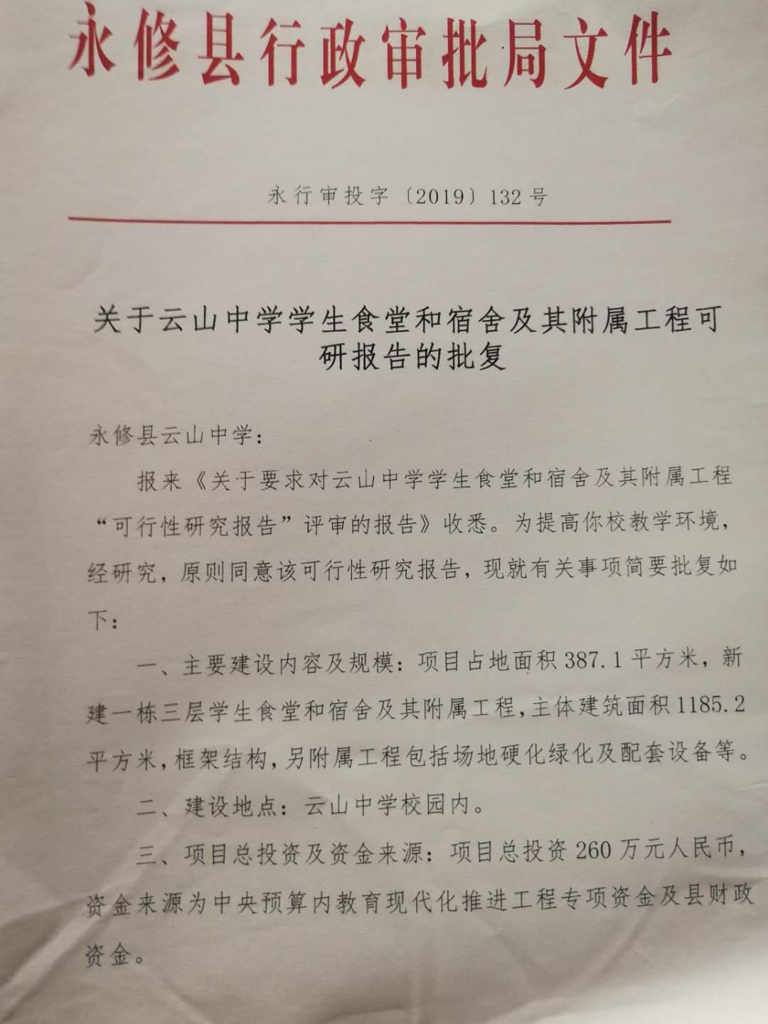 永修县云山中学学生食堂和宿舍及附属工程项目建设基本信息