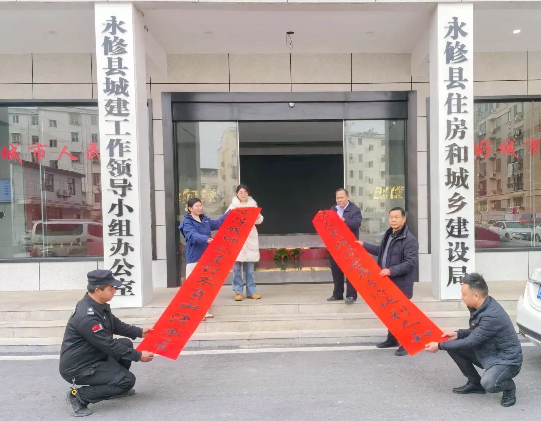 今年春节前夕,永修县白鹤世纪花园居民范先生将手写的“心系城乡抓建设不负山清水秀,情牵百姓保安居方得地利人和”对联,送到永修县住建局,以此表达居民对该小区改造建设及物业长效管护与服务工作的支持与感激。