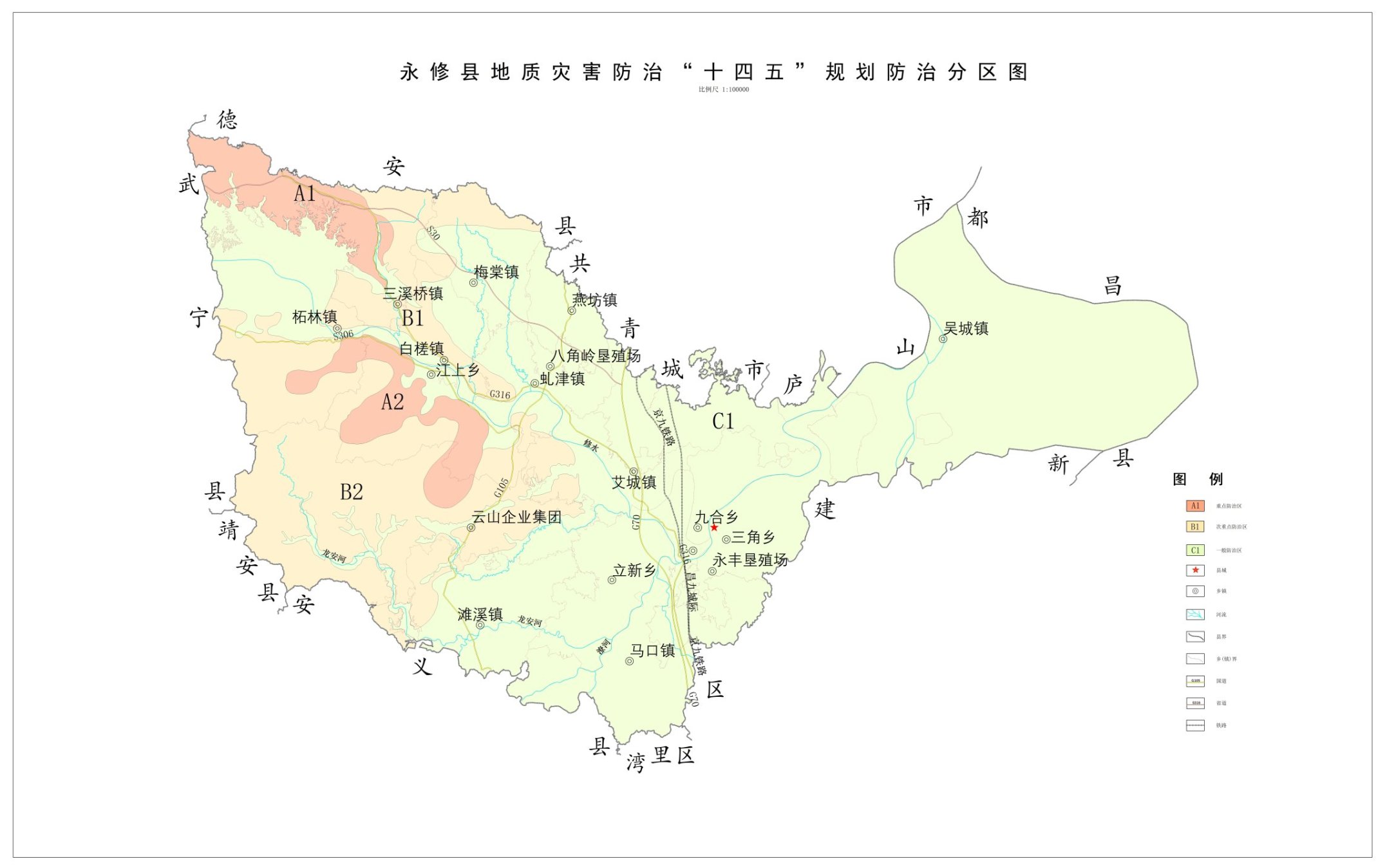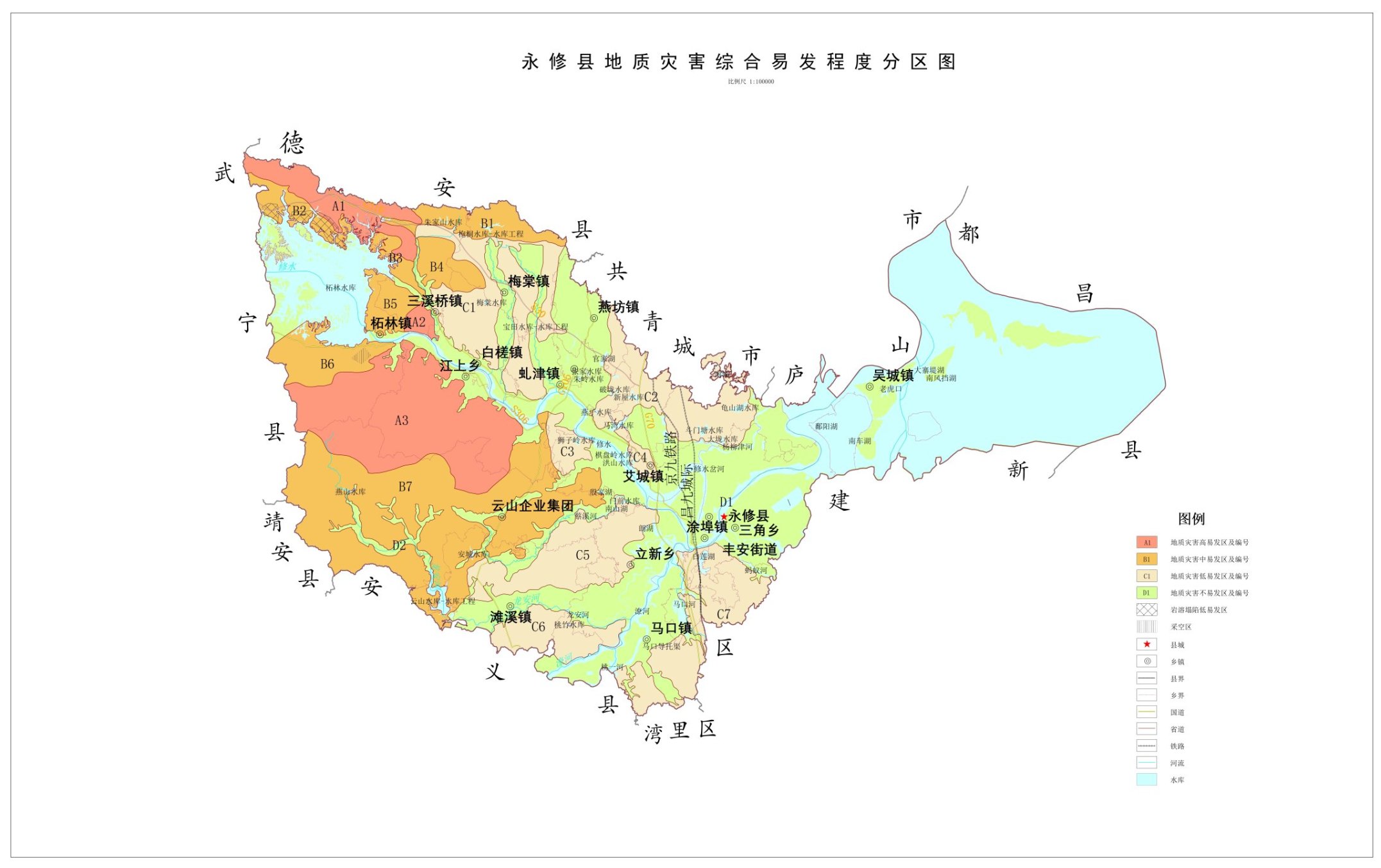 1、永修县地质灾害综合易发程度分区图