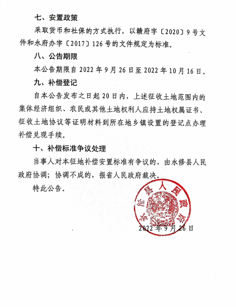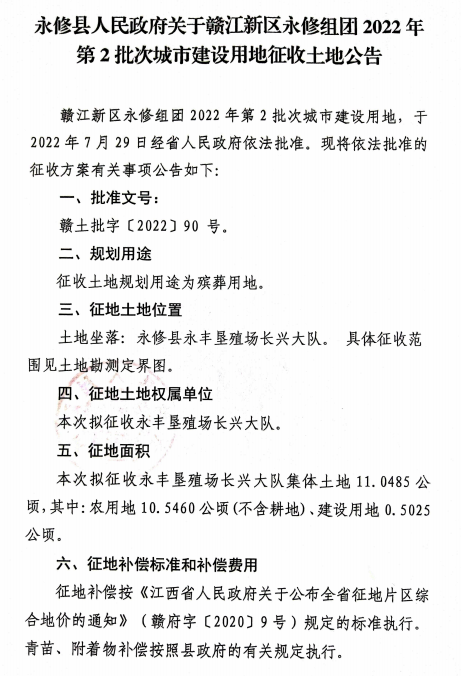 赣江新区永修组团2022年第2批次城市建设用地征收土地公告