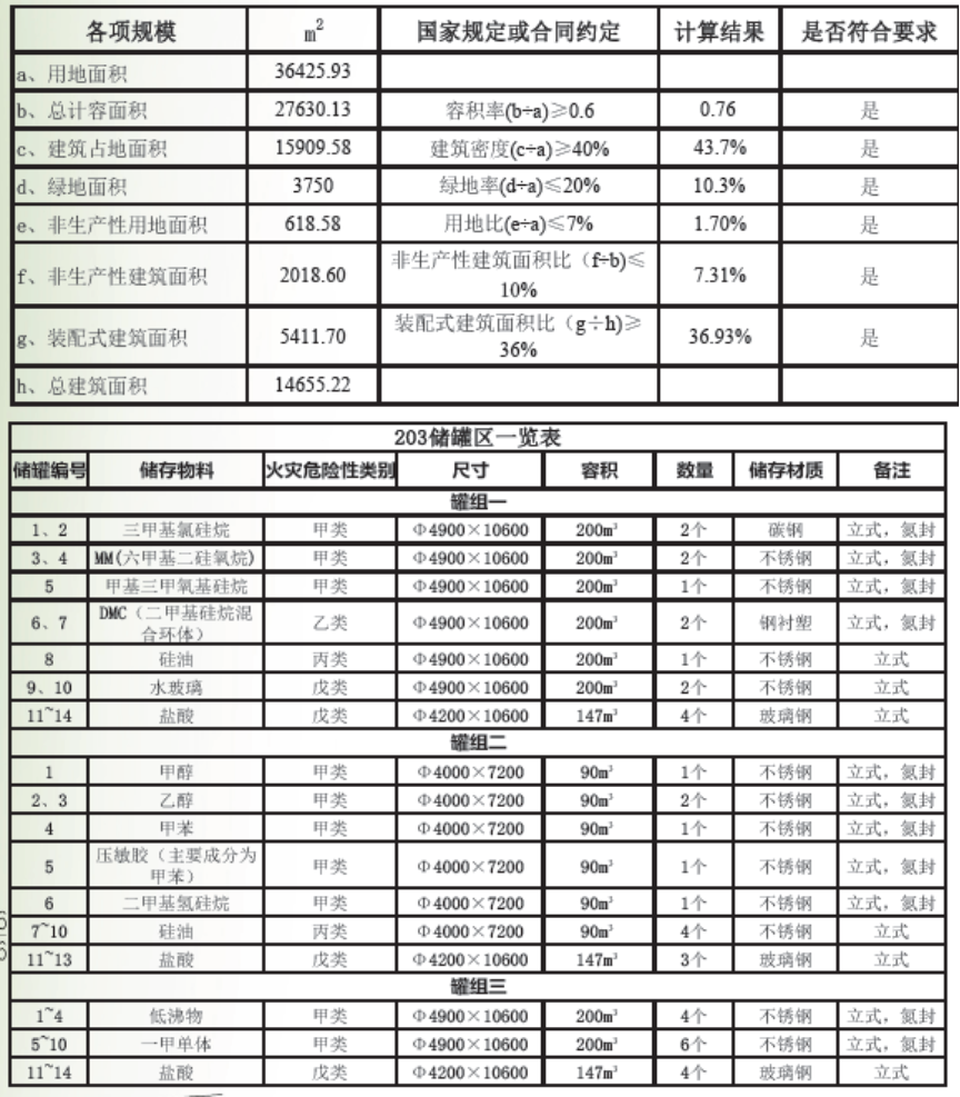 三、公示内容:天绘(江西)新材料科技有限公司提交的“天绘(江西)新材料科技有限公司年产2.7万吨有机硅材料建设项目规划建筑设计改、扩建方案”,厂区402门卫为已建,其余均为空地,建筑设计改、扩建方案后厂区建、构筑物单体为:401综合楼、402门卫、101生产车间、102生产车间、201丙类仓库、202甲类仓库、203储罐区、泵区(203储罐区)、204丙类仓库、205丙类仓库、206辅助用房、302循环水池、303监测房(含消防泵房)、304消防水池、305在线监测间、306污水处理区、307初期雨水池、308事故应急池、309循环水池、外管架、管廊。本项目规划设计改、扩建方案满足建筑密度、防火间距、容积率、绿地率等规划要求。