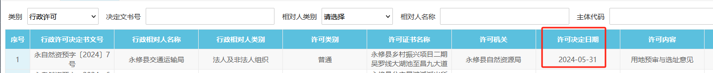 2024年05月自然资源局行政许可信息