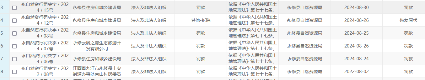 自然资源局8月份行政处罚
