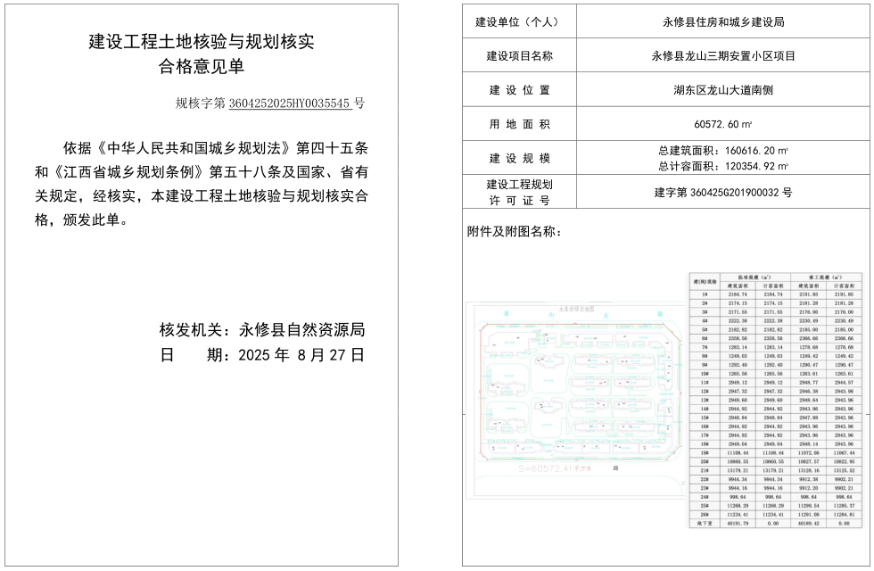 永修县住房和城乡建设局的永修县龙山三期安置小区项目土地核验与规划核实结果公告